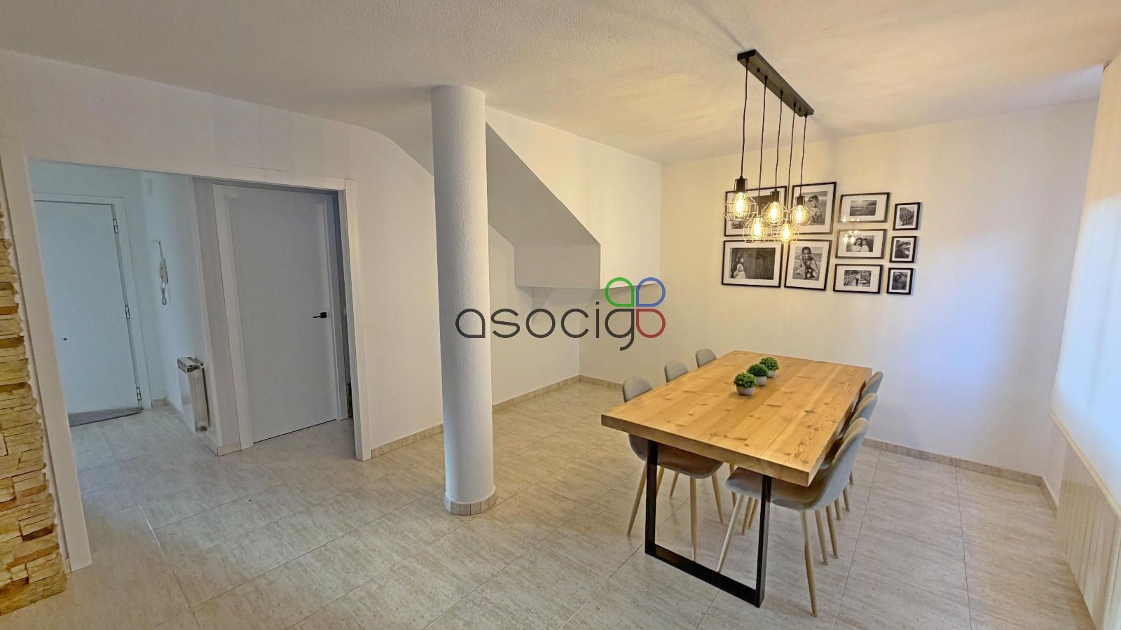 La planta baja ofrece una zona de día cómoda y bien pensada, con un salón amplio, muy luminoso y bien orientado, con acceso directo al patio. Dispone de cassette de pellet y aire acondicionado con bomba de calor, garantizando confort durante todo el año. En esta planta se encuentra también una cocina amplia y funcional con península, así como un baño completo con ducha.