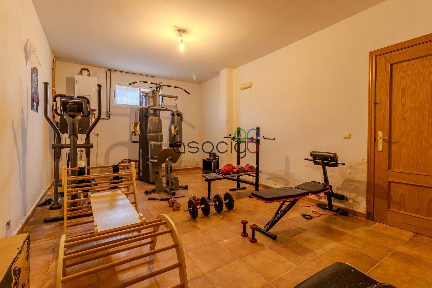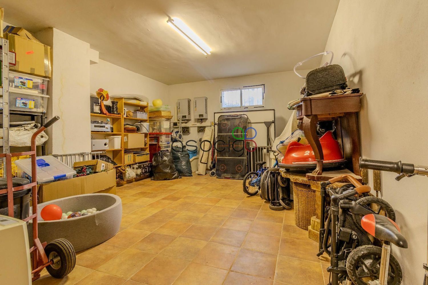 El sótano ofrece múltiples posibilidades gracias a sus estancias versátiles: zona de ocio, gimnasio o sala de reuniones, además de lavandería, trastero, un amplio salón y aseo.